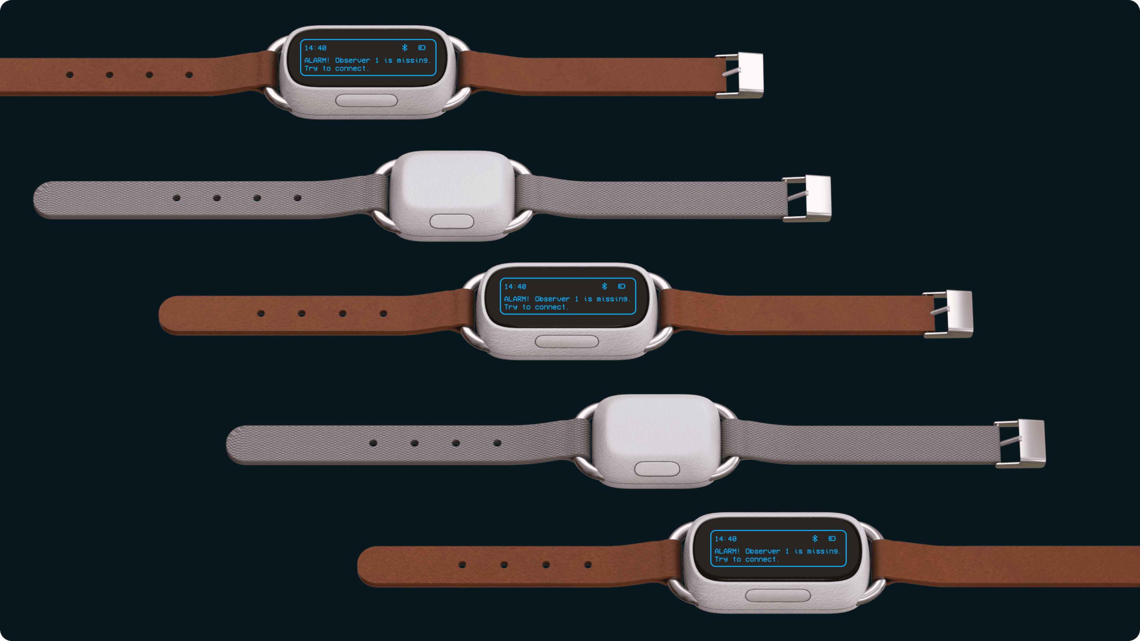 AirPair focuses on the prevention of a loss occurrence by directing critical alerts to a dedicated wearable device. This increases reaction time when seconds may count. Beacon sends its location data to Observer to determine the distance between devices. When the Beacon leaves a certain area (when the distance between Observer and Beacon is bigger than allowed), the Observer starts vibrating, thus notifying the user about it. The distance allowed between the Observer and Beacon devices is configured and controlled by the mobile app.